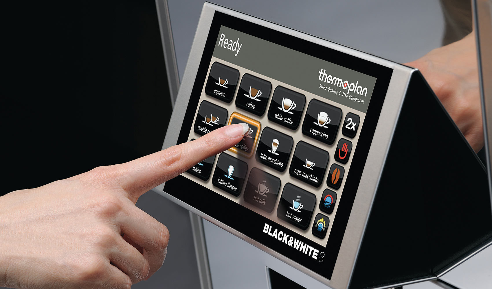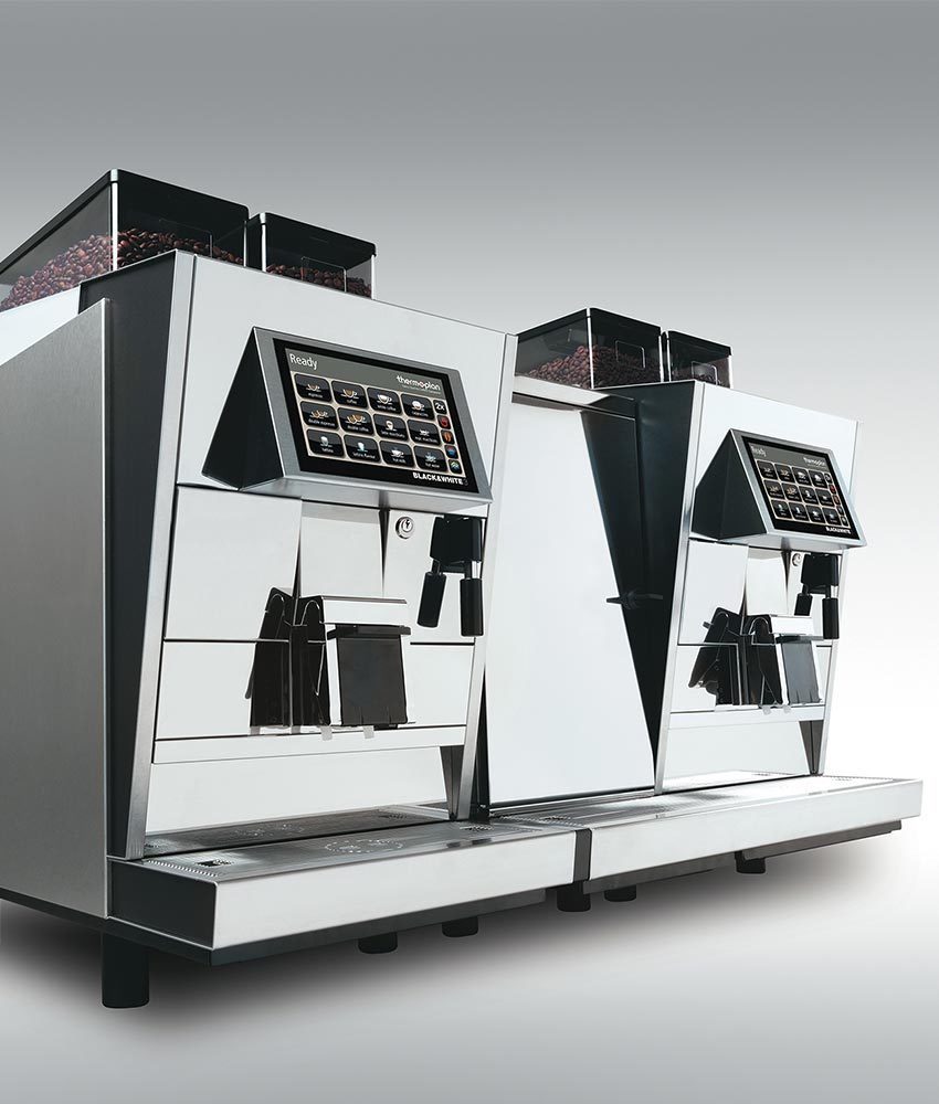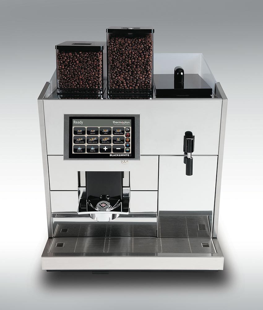 - Black & White3 của Thermoplan nhấn mạnh từng chi tiết về nhu cầu cao cấp trên máy pha cà phê cao cấp để sử dụng chuyên nghiệp. Máy pha cà phê hoàn toàn tự động cung cấp hiệu suất cao đáng tin cậy, kỹ thuật tinh vi và đã được chứng minh trên toàn cầu trong các lĩnh vực ứng dụng khác nhau.